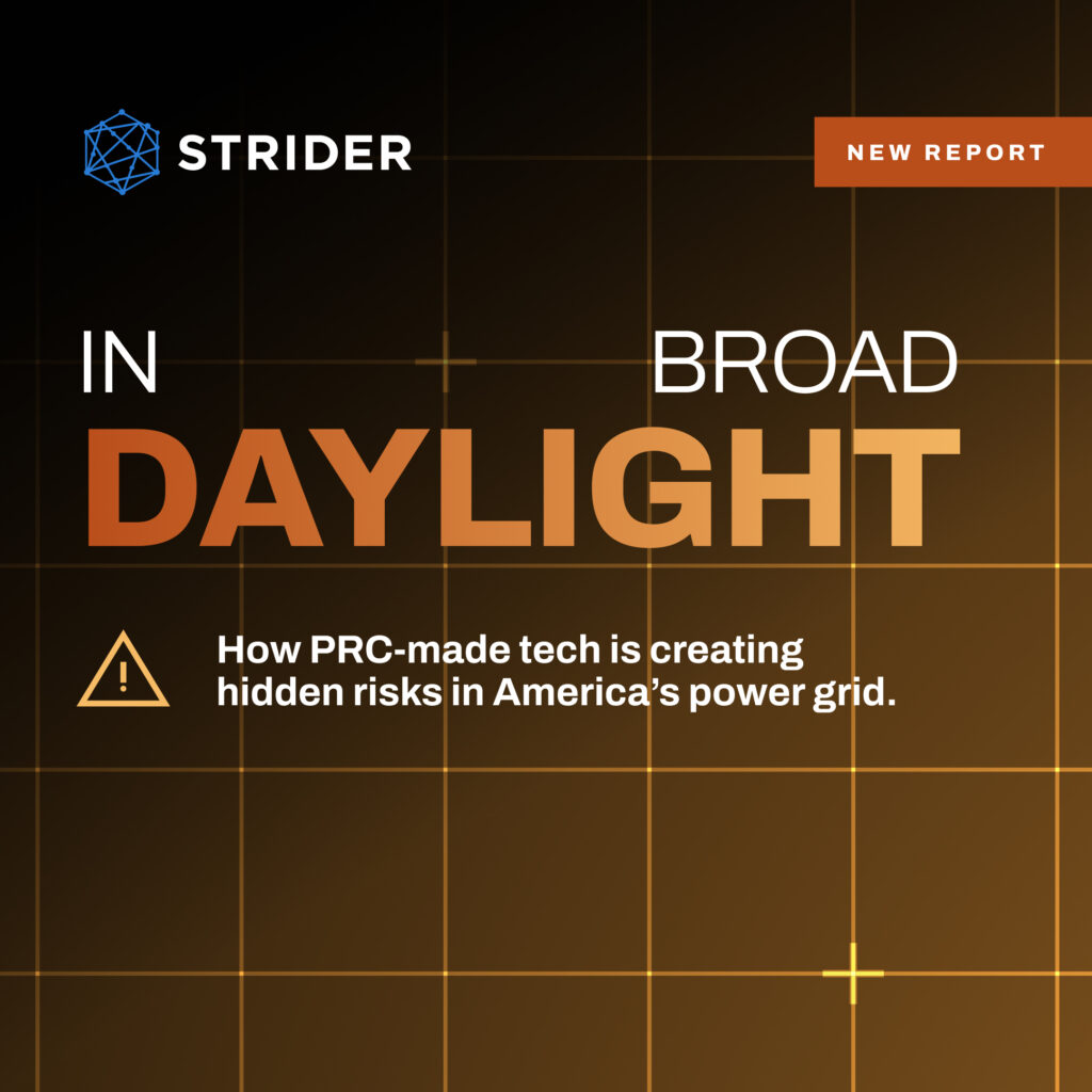 A new report from Strider—In Broad Daylight: U.S. Grid Exposed to Risk from PRC-Manufactured Inverter Equipment—details the United States’ growing dependence on inverter-based resources (IBRs), including solar inverters and battery energy storage systems (BESS), manufactured by companies in the People’s Republic of China (PRC). These networked, software-driven devices are capable of remote communication and control which, when combined with their PRC origin, expose U.S. critical infrastructure to unprecedented risk.